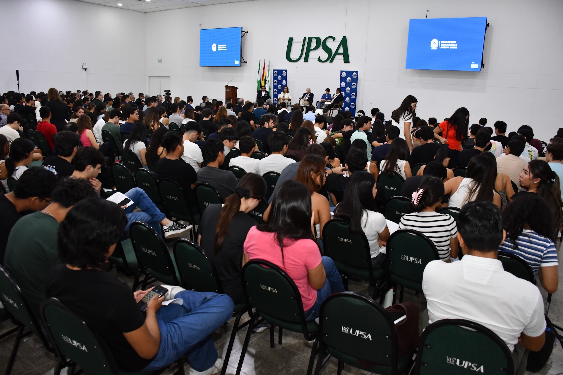 El auditorio de la UPSA estuvo colmado de estudiantes que tuvieron la oportunidad de plantear sus preguntas y reflexiones directamente a los panelistas, lo que generó un intercambio dinámico y participativo.